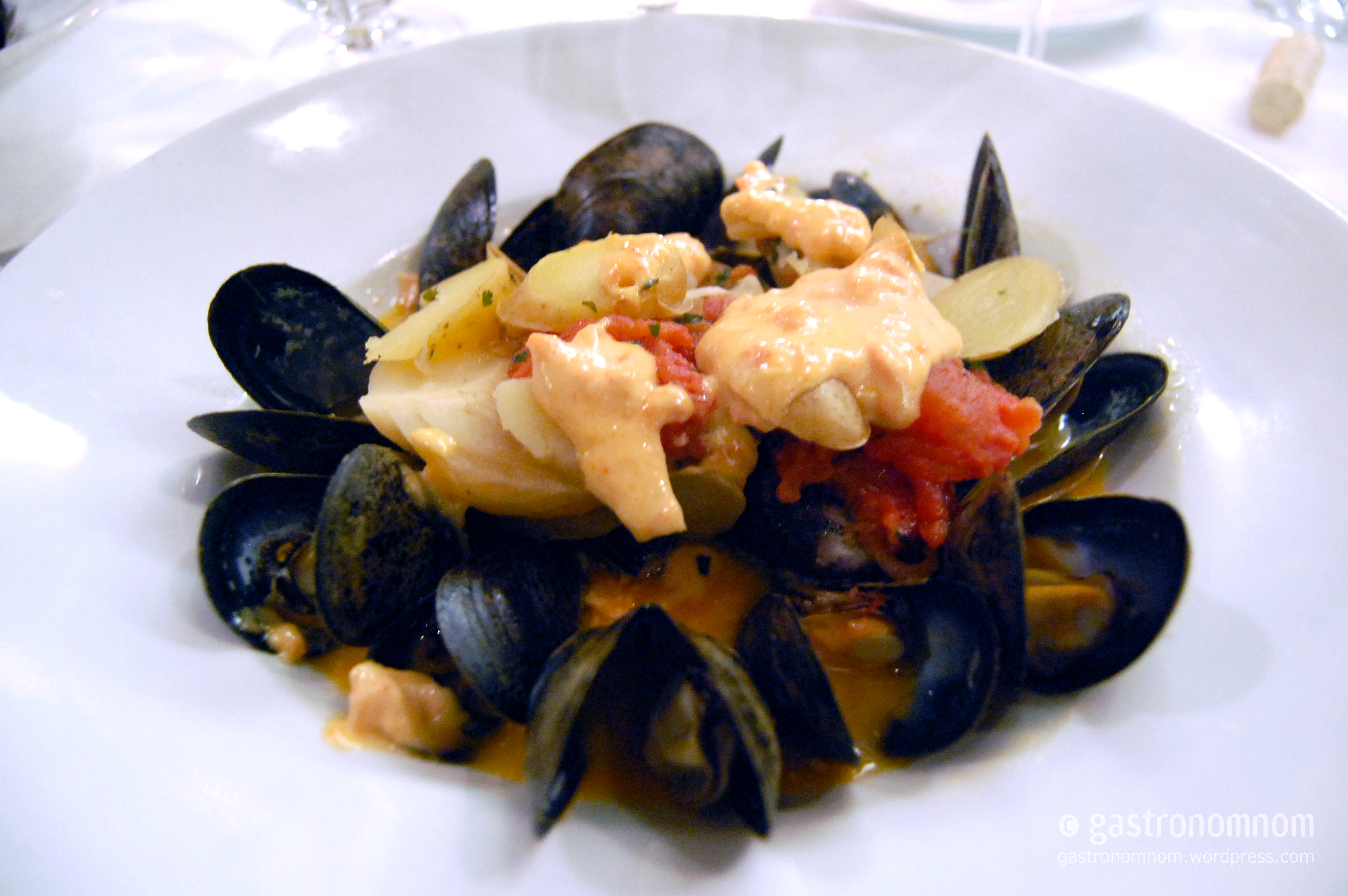Specifically, steamed mussels, fingerling potatoes, fennel and tomato confit. Mmmm, it tastes of the sea with the tomato broth adding a bright sweetness. The fingerling potatoes with a melted cheese sauce on top add a density to the dish.