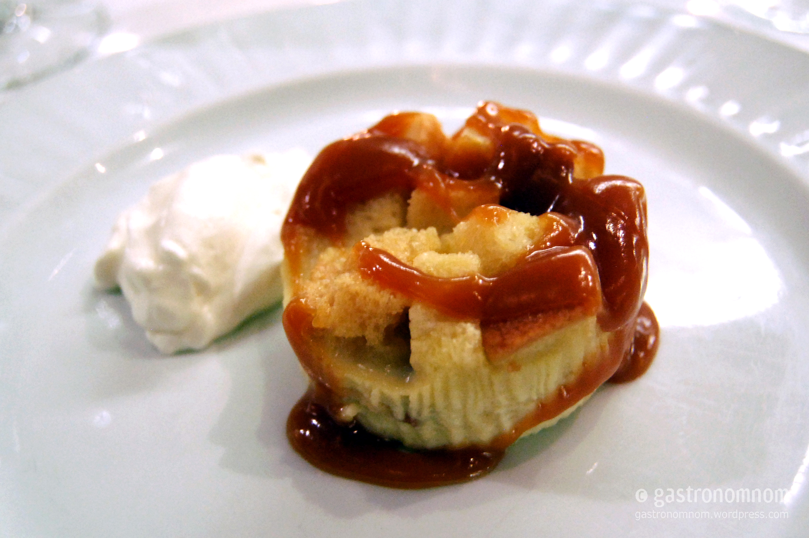 A dainty, compact bourbon bread pudding with caramel sauce and creme fraiche. On the top, folds of bread burst and spread apart, a thick bourbon caramel sauce oozing into its crevices. But dig deeper into her pudding and you’ll find its depths to be soft and sweet and custardy.