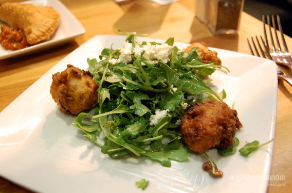 I conceded one dish to a salad for the girl. The aforementioned arugula salad with pumpkin calas, pecan and tasso bacon. I let her eat the arugula. I ate the deep fried pumpkin fritters. I like to compromise.