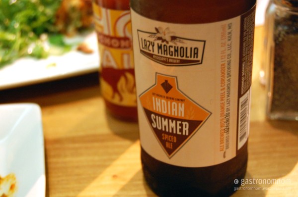 Which, luckily, I had on hand. Lazy Magnolia’s Indian Summer Spiced Ale. The orange and coriander notes were pronounced, making it quite a floral beer. I have to look out for this in LA. Delicious.