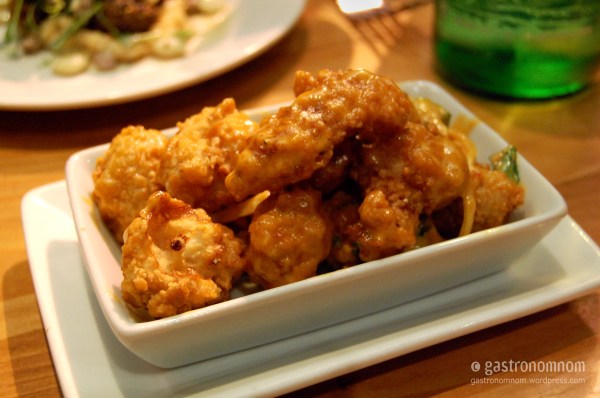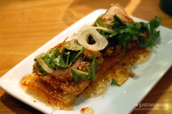 Next up was the fried alligator with chili garlic aioli. The last time I had alligator was in a Vietnamese restaurant and it was heavily sauced. I don’t think I’d ever had a true taste of alligator. I can report back that it tastes like chewy pork. Still, it’s hard to go wrong with even deep fried chewy pork with a sweet chili garlic sauce.