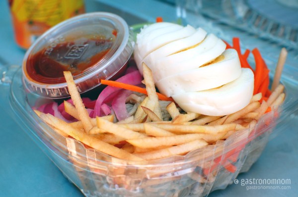Spicy chilled buckwheat noodles with fuji apples and Korean veggies ($5). I think this would be great for breakfast. Or for a hangover. Fruit, veges, carbs, protein and sauce. All your major food groups in a plastic takeout container. Is sauce a recognized food group?