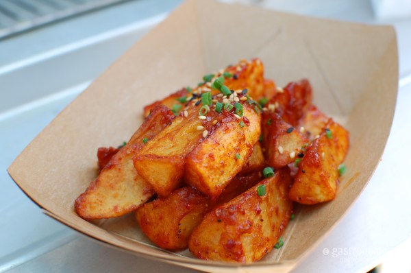 Seoultown spuds: garlic fried potato wedges, chile sauce drizzle ($5). Combine with the Korean Fried Chicken for a K-spin on the Colonel’s fried chicken and potato wedges.