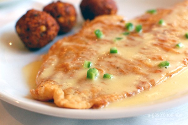 Tillamook Bay Petrale Sole with crab beignets and lemon butter sauce. When I saw crab beignets, I was understandably excited. They were unfortunately not the best part of the dish.