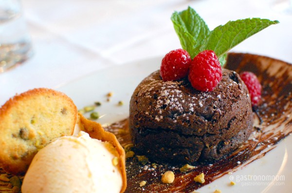 Chocolate Lava Cake served with vanilla ice cream and chopped pistachios. Kinda 2005 but, to be fair, this wasn’t part of Fleming’s new menu but one of their long standing favorites. Incredibly rich, if you’re a chocoholic, you’ll love it. I’m not. But I do love a good creme brulée.