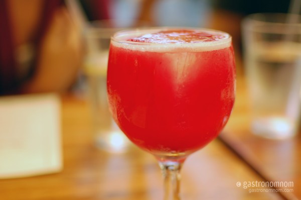The first cocktail of the night was barman Michel Dozois’s Untamed Cherries, made with freshly squeezed lemon juice, cherries, yellow chili peppers and organic rum. Sweet to begin, this cocktail soon became about the heat of the chili peppers. Perhaps too much heat. Capsaicin tends to overpower most dishes you pair with it.