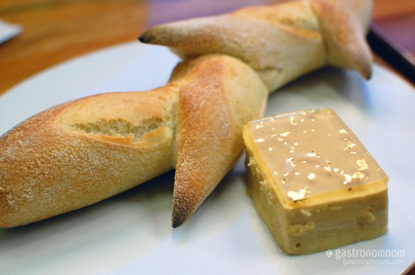 Given that we were at Breadbar, dinner began with the now familiar epi bread but this time with foie gras butter. Relatively subtle, the foie gras imparted a gentle livery-ness, punctuated by the honey gelée on top, which was flecked with gold leaf. I guess if you’re going to do foie gras butter, you might as well make it luxurious.
