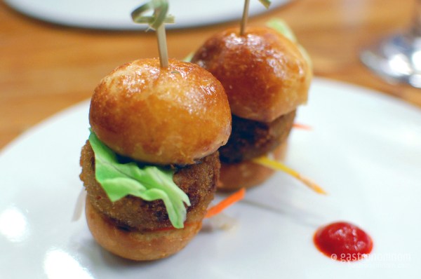 Moving on to Vietnam, we were presented with “Banh Mi” Pig’s Feet Sliders. I can’t say that these reminded me of banh mi except for the picked vegetables, but what’s not to like about panko breaded pig’s trotter patties? The homemade siracha sauce definitely added the requisite Asian kick.